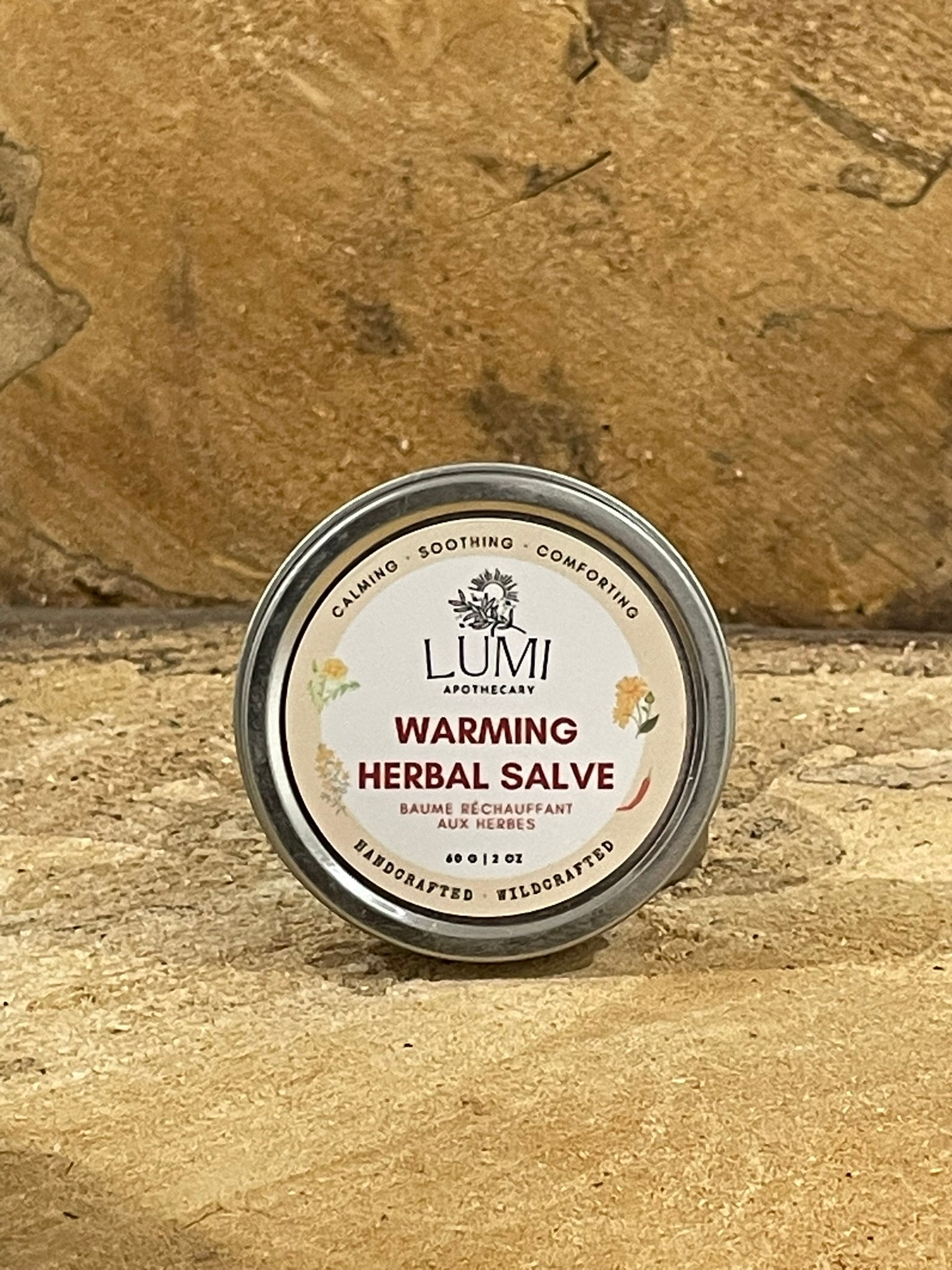 Our Warming Herbal Salve is made from organically sourced ingredients to ensure a pure and natural offering. Before using the salve, perform a patch test on a small area of skin to check for any allergic reactions or sensitivities. Specifically, individuals with allergies or sensitivities to bee products should exercise caution when using products containing beeswax.